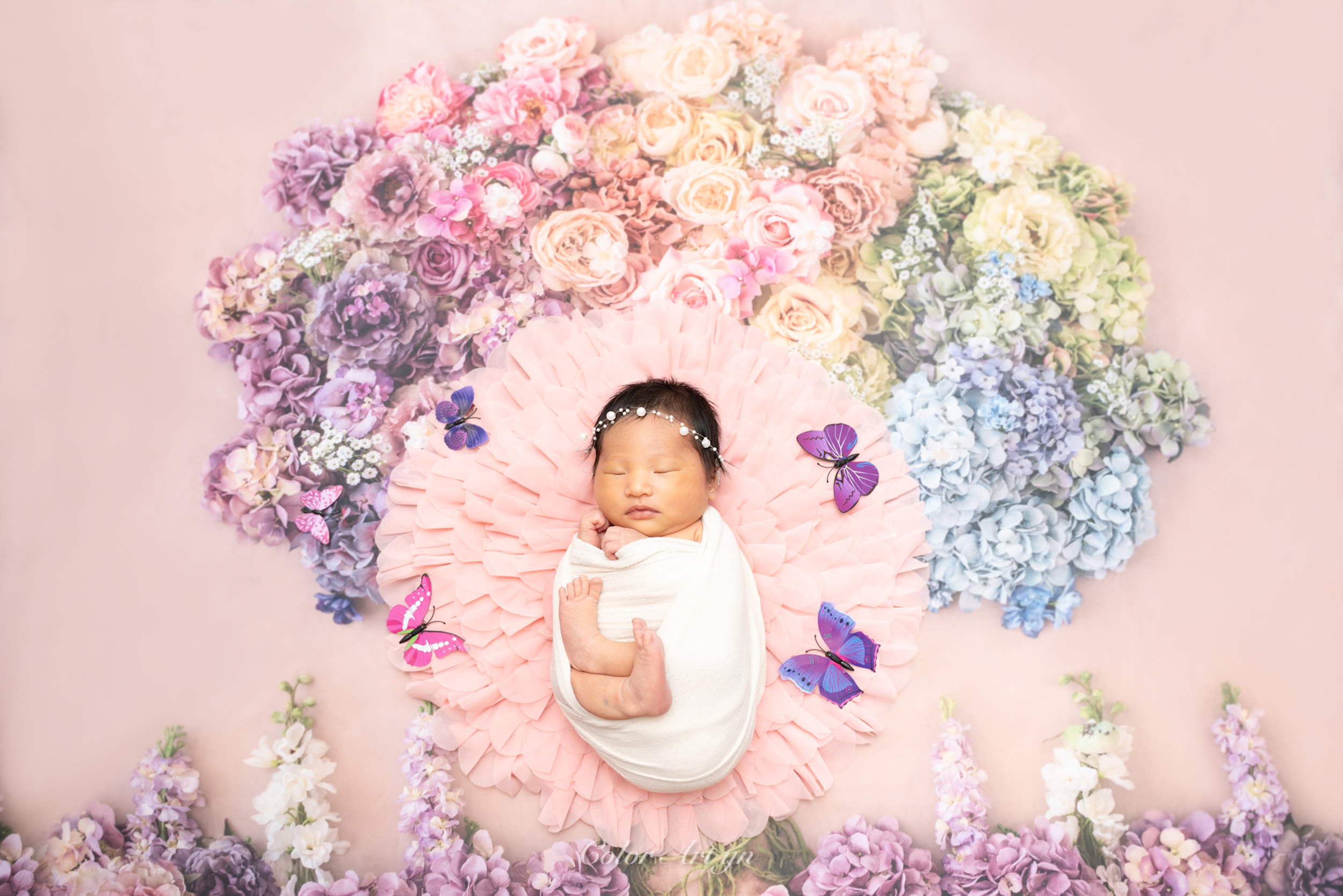 お花畑けの背景/レインボーおくるみ/ニューボーンおくるみプラン